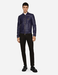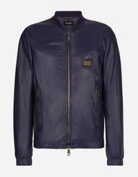 Lambskin jacket with metal tag featuring the Dolce&Gabbana logo: • Blue •Regular fit •Stretch knit neck •Front zipper fastening •Zipped inner welt pockets and outer pockets •Stretch cuffs and hem •Lined •The piece measures 63 cm from the rear collar seam on a size IT 48 •The model is 185 cm tall and wears a size IT 48 •Made in Italy Care And Details External composition: 100% Lambskin Internal composition: 100% Viscose