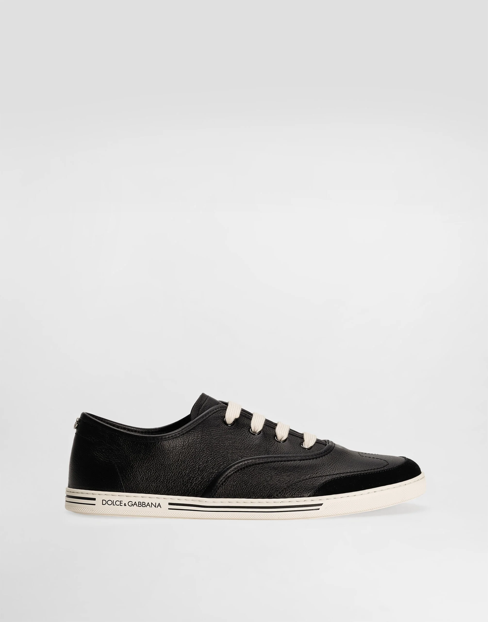 The scene is set for Dolce&Gabbana's distinctive and iconic aesthetic codes in the Collection from Men's Fall/Winter 2025 Fashion Show. The evening lights up with radiant brooches and is enriched with classic suits and blazers of timeless elegance. The Saint Tropez sneakers are the perfect fusion of casual style and refined details, ideal for completing a contemporary look. Calfskin sneakers: • Black • Saint Tropez shape • TPU outsole • Felt insole • Polyurethane fussbett insole wrapped in leather customized with label • Branded tongue • DG accessory on heel • Ruthenium plating • Sole height 10 mm • Item equipped with a black Cotton bag and a box made of recycled paper cellulose fiber • Made in Italy External Composition: 100% Calfskin Internal Composition: 90% Lambskin, 10% Goatskin