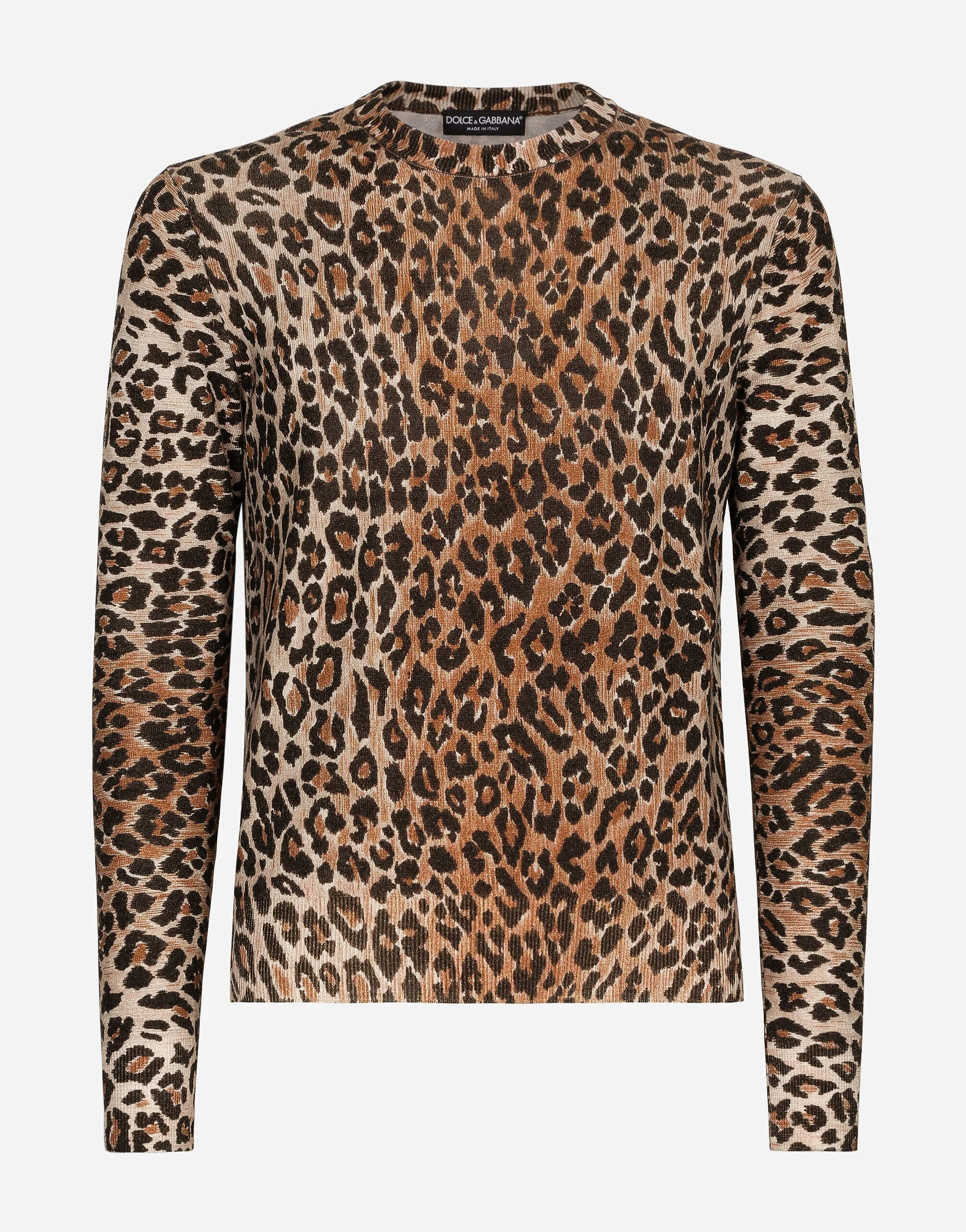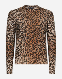 Round-neck extra-fine virgin wool sweater with leopard print: • Animal print • Regular fit • Long sleeves • 18-gauge knit • The piece measures 68 cm from the shoulder seam on a size IT 48 • The model is 185 cm tall and wears a size IT 48 • Made in Italy Care And Details External composition: 100% Virgin Wool