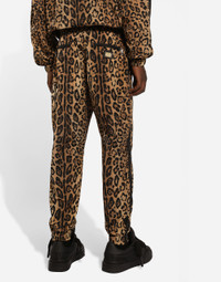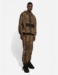 The new Crespo Leo collection is an ode to the leopard print that made Dolce & Gabbana’s history and which went on, over time, to become an emblem of boldness and sheer eccentricity. Every season it is reinterpreted and reworked in new bold and surprising takes, in an unmistakable blend of creativity, tradition and Mediterranean flair that merges memories and cultural references, thereby creating iconic, timeless pieces that stand apart from any trend, infused with great emblematic value. Nylon jogging pants with leopard-print Crespo: • Multi-colored • Regular fit • Stretch waistband with drawstring and branded metal aglets • Front slant pockets, a side patch pocket with flap and zipped welt pockets on the back • Dolce&Gabbana logo tag on the back • Stretch ankle cuffs • The item measures 104 cm on the outer leg and the hem is 13.8 cm wide on a size IT 50 • Made in Italy External composition: 90% Polyamide 10% Polyester