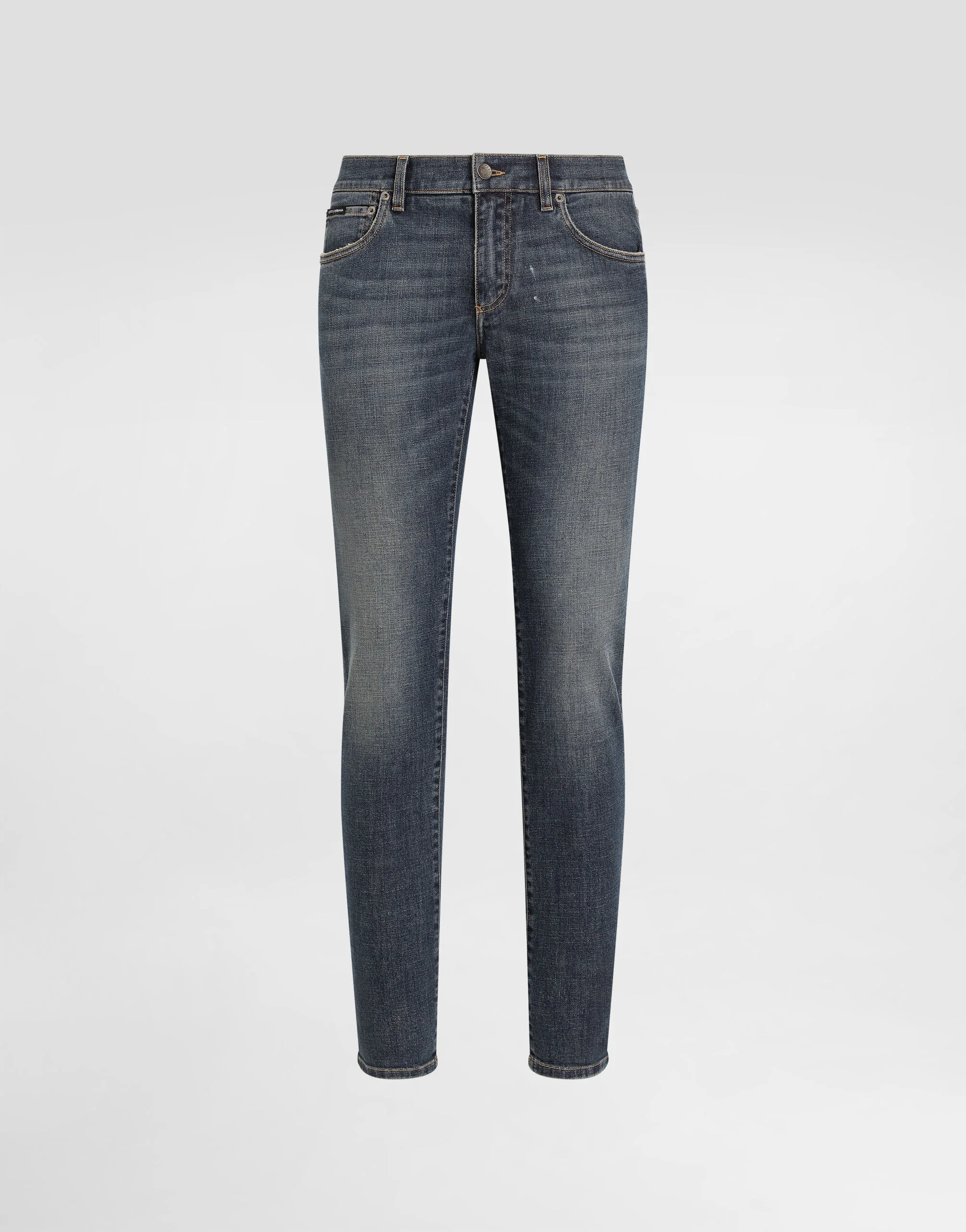 Five-pocket skinny jeans in light blue wash stretch denim: • Slim fit • Fly-covered zipper and button fastening • Metal Dolce&Gabbana logo tag on the back • The item measures 105 cm on the outer leg and the hem is 17 cm wide on a size IT 48 • The model is 185 cm tall and wears a size IT 48 • Made in Italy Care And Details External composition: 98% Cotton 2% Spandex
