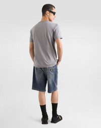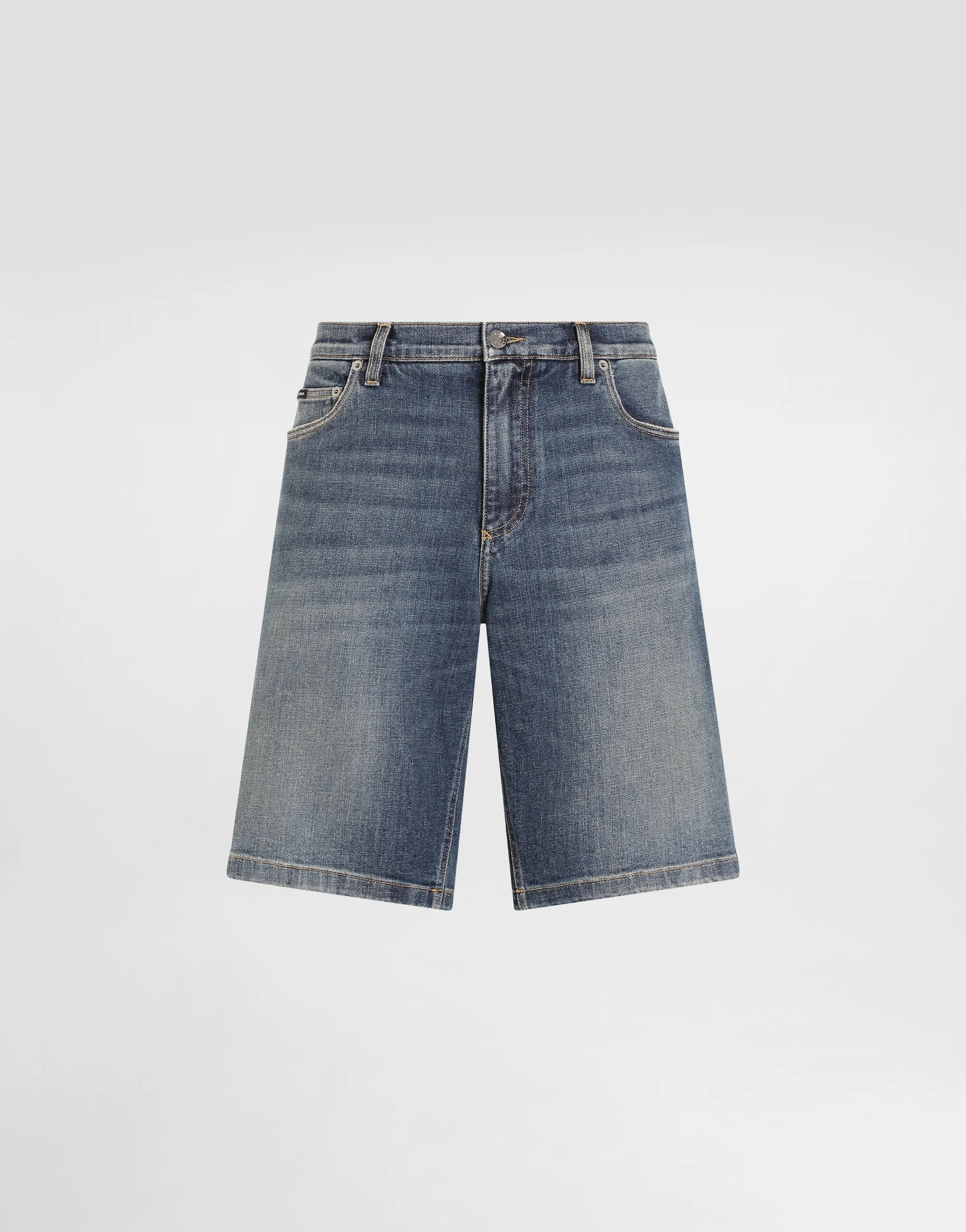 Five-pocket denim shorts in washed light blue stretch denim: • Regular fit • Fly-covered zipper and button fastening • Metal Dolce&Gabbana logo tag on the back • The item measures 52 cm on the outer leg and the hem is 28 cm wide on a size IT 48 • The model is 185 cm tall and wears a size IT 48 • Made in Italy Care And Details External composition: 98% Cotton 2% Spandex