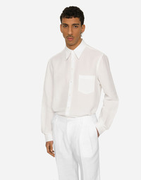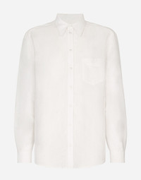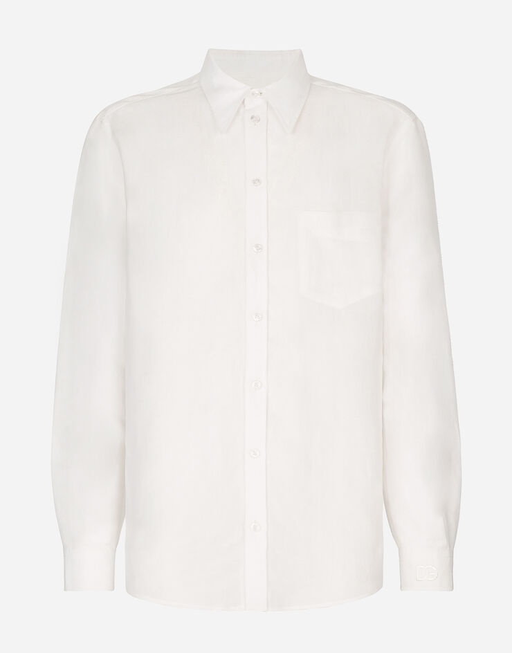 Linen-blend shirt with DG embroidery on the cuff: • White • Regular Martini fit • Kent collar • Long sleeves • Button fastenings • Rear yoke with inverted pleat on hem • The piece measures 77 cm from the rear collar seam on a size IT 40 • The model is 185 cm tall and wears a size IT 40 • Made in Italy Care And Details External composition: 61% Linen 39% Viscose