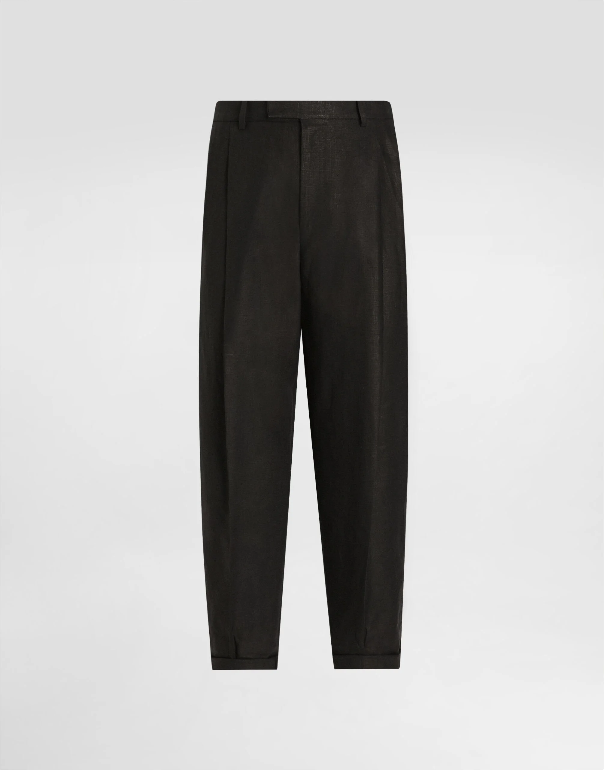 Italy and its beauty are reflected in the Men’s SS25 Collection. Woven raffia and leather give life to jackets, polo-shirts and sweaters to celebrating Italian craftsmanship. The color palette ranges from Nero Sicilia black to burgundy, contributing to conveying a sense of eternal elegance. Refined accessories complement the look: belts and loafers with hand-finished details and oversize bags, such as the Sicily, the Marlene with crocodile-effect print and the versatile Adamo tote. Classic linen fabric pants: • Black • Regular fit • Belt loops on the waist • Fly-covered zipper and button fastening • Front slant pockets and welt back pockets • The item measures 100 cm on the outer leg and the hem is 18 cm wide on a size IT 48 • Made in Italy External composition: 100% Linen