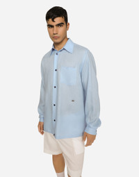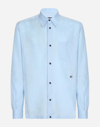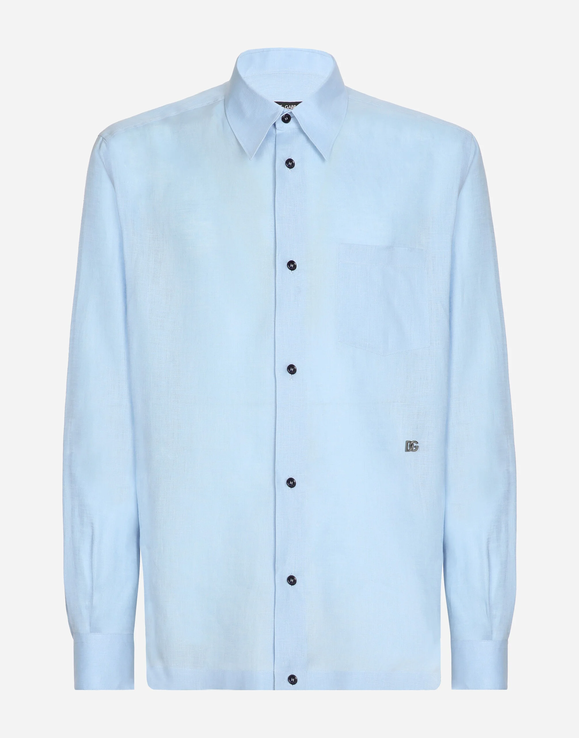 Linen shirt with DG hardware: • Light blue • Loose Hawaiian fit • Kent collar • Long sleeves • Button fastenings • Buttoned patch pocket • Side slits • The piece measures 78 cm from the rear collar seam on a size IT 40 • The model is 185 cm tall and wears a size IT 40 • Made in Italy Care And Details External composition: 100% Linen