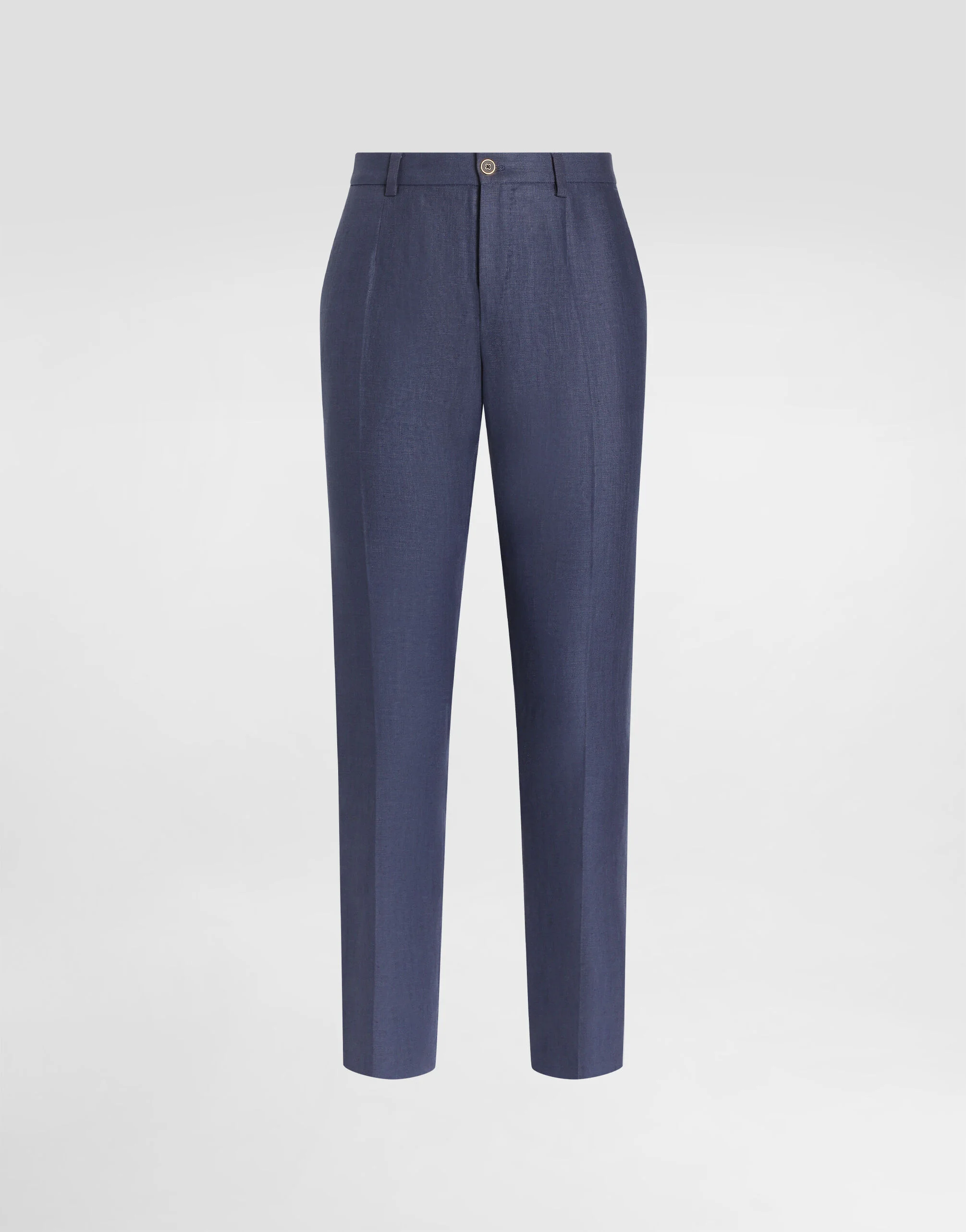 Tailored linen pants: • Blue • Regular fit • Belt loops on the waist • Adjustable on sides with button • Fly-covered zipper and button fastening • Front slant pockets and buttoned welt pockets at the back • The item measures 96 cm on the outer leg and the hem is 17 cm wide on a size IT 48 • The model is 185 cm tall and wears a size IT 48 • Made in Italy Care And Details External composition: 100% Linen