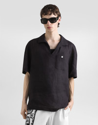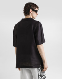 This raglan short sleeve T-shirt is a versatile garment ideal for any occasion. Made of linen, it offers comfort and style, perfect for a casual and refined look. Short-sleeve linen t-shirt: • Black • Regular fit • Shirt collar • Bottom width 71.5 cm on size 48 IT • The model is 185 cm tall and wears a size 48 IT • Made in Italy External Composition: 100% Linen