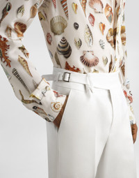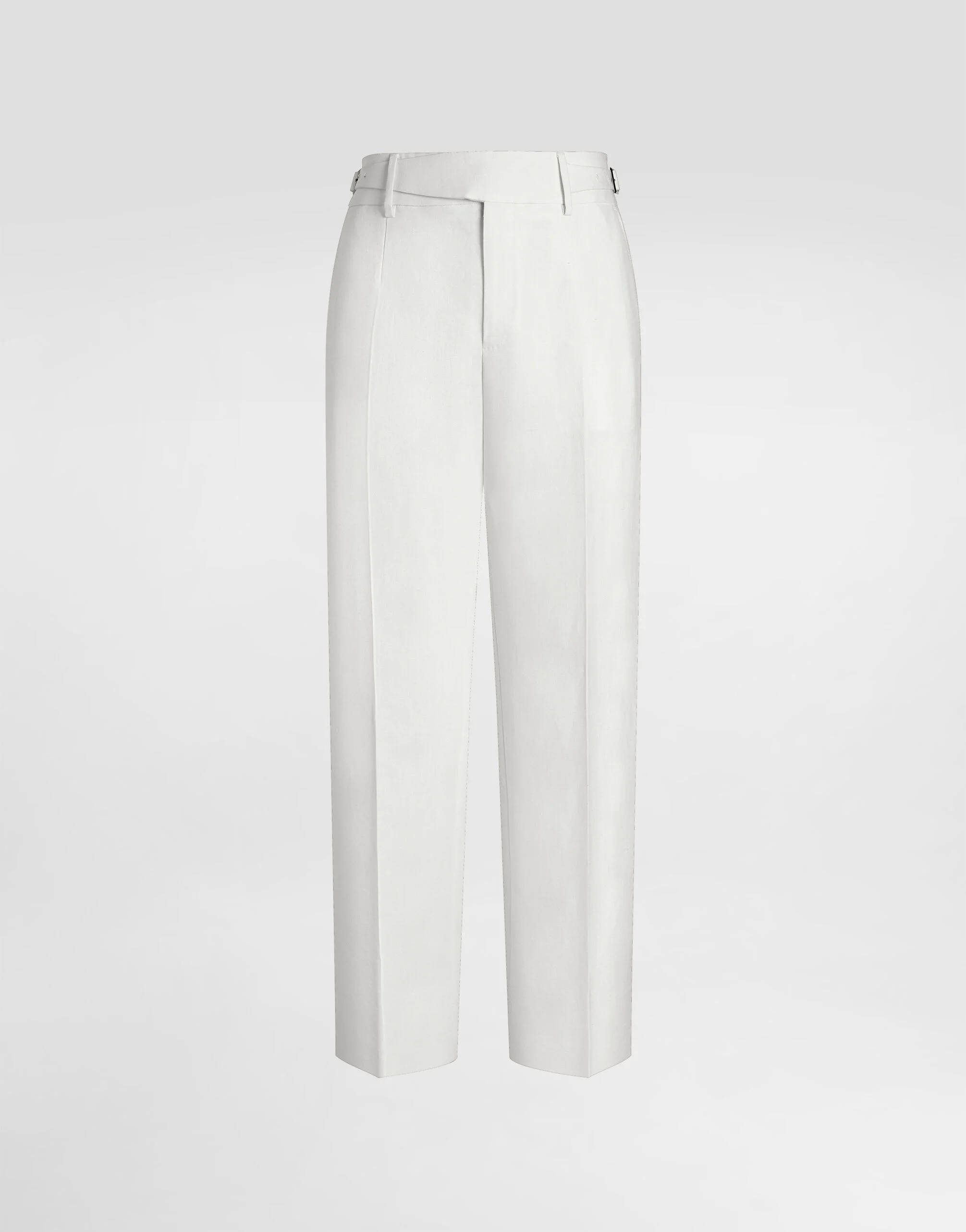 These classic trousers are made of linen canvas, perfect for a sleek and sophisticated summer look. With an all-fabric belt and a traditional design, it is ideal for any occasion. Classic linen canvas trousers: • White • Classic shape with low-crotch • Full fabric belt • The model is 185 cm tall and wears a size 48 IT • Made in Italy External Composition: 100% Linen