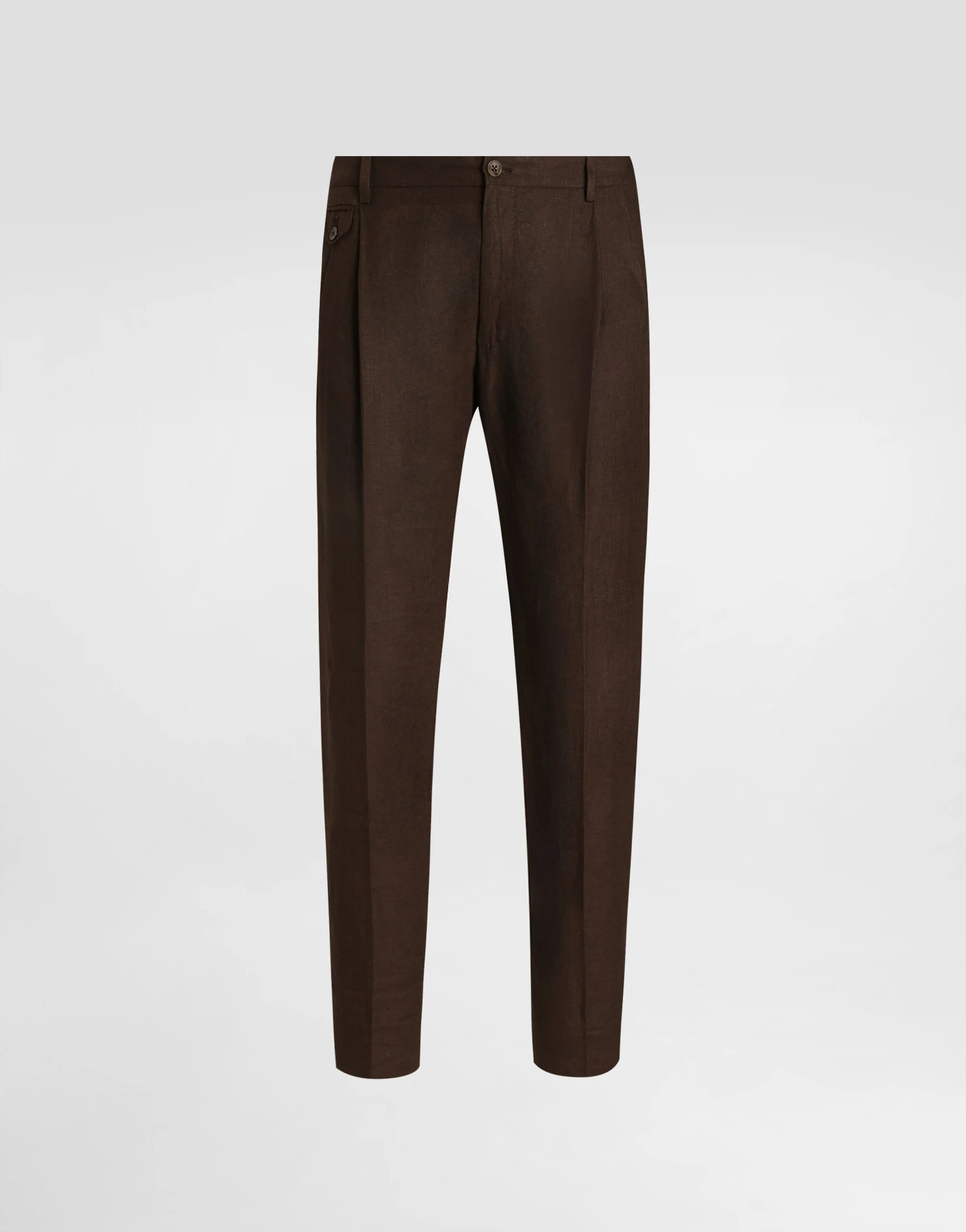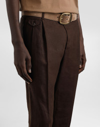 These linen trousers represent the perfect balance between elegance and comfort, ideal for the man who loves a refined and informal style. Linen trousers: • Brown • The model is 185 cm tall and wears a size 48 IT • Made in Italy External Composition: 100% Linen