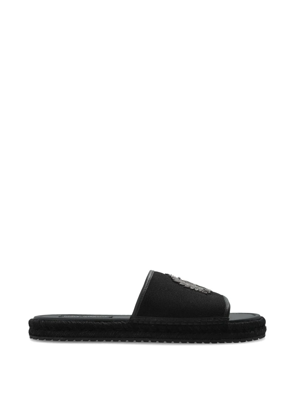 logo-applique braided sandals Highlights - Black - Logo applique - Braided detailing - Open toe - Flat sole Made in Italy Composition Outer: Cotton 100%, Calf Leather 100% Lining: Calf Leather 100% Sole: Rubber 100%
