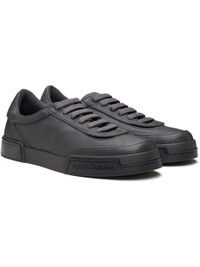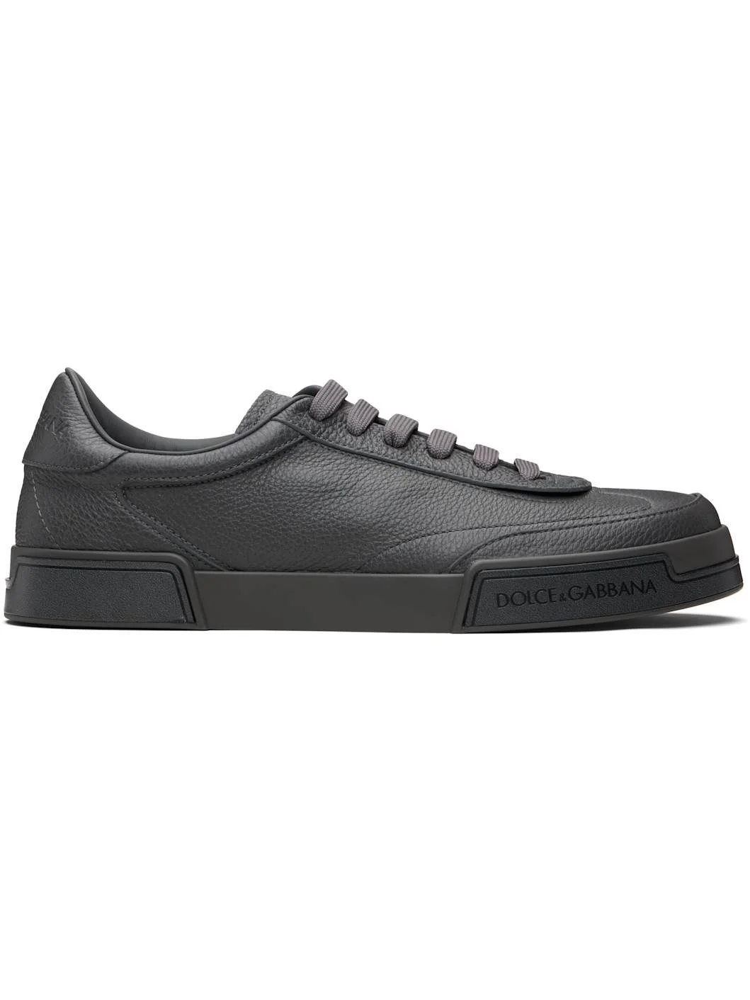 Low-top grained calfskin sneakers. · Lace-up closure · Padded tongue and collar · Logo embossed at tongue and heel tab · Lambskin and goatskin lining · Logo embossed at midsole · Treaded rubber sole Supplier color: Grigio/Nero Upper: calfskin. Sole: rubber. Made in Italy 251003M237053