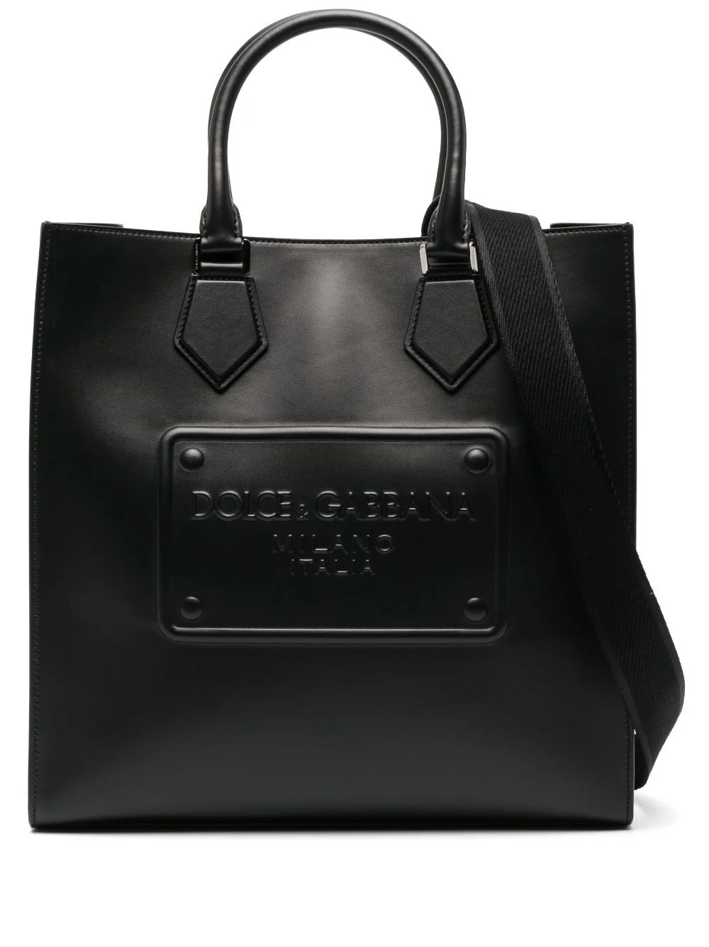 logo-embossed leather tote bag Highlights - Black - Calf leather - Smooth grain - Embossed logo to the front - Silver-tone hardware - Adjustable detachable shoulder strap - Two rolled top handles - Foldover top with magnetic fastening - Internal zip-fastening pocket - Main compartment Made in Italy Composition Outer: Calf Leather 85%, Viscose 15% SIZE & FIT Model measurements Height 6 ft 2 in(1.87 m) Bust/Chest 38.18 in(97 cm) Hips 36.61 in(93 cm) Waist 29.13 in(74 cm) Measurement DEPTH 3.93 in(10 cm) HANDLE 5.11 in(13 cm) HEIGHT 14.56 in(37 cm) STRAP 25.98 in(66 cm) WIDTH 14.56 in(37 cm)