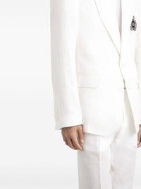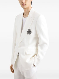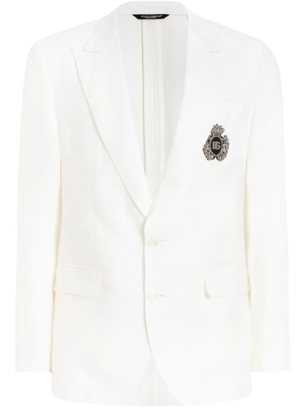 logo-embroidered blazer Highlights - White - Front button fastening - Two front flap pockets - Long sleeves - Curved hem Made in Italy Composition Outer: Linen/Flax 100% Lining: Cotton 100%