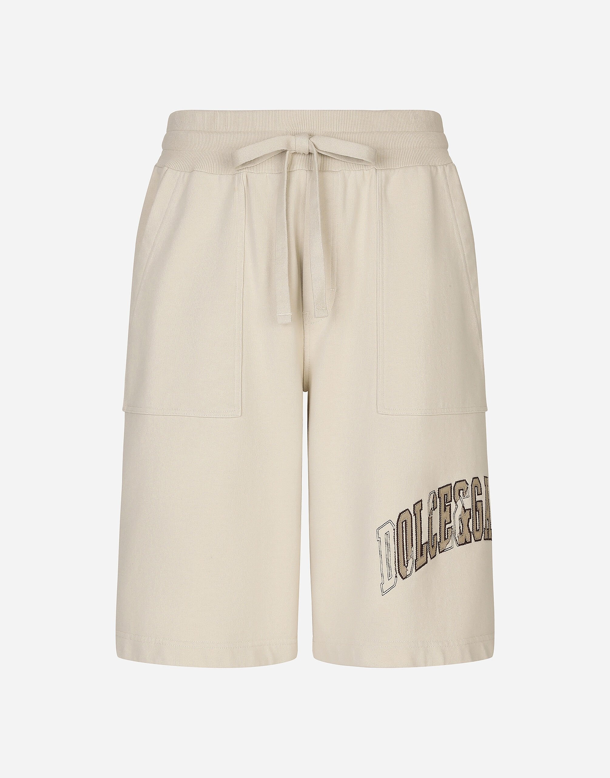 The Palermo collection represents the link between the Sicilian man’s world and the unspoiled nature of the island. A language marked by warm hues – sand, cream, Nero Sicilia black – floral paintings and iconic prints. The Dolce&Gabbana closet must-haves have been reworked in different materials, in pursuit of a new form of harmony. A collection rich in suggestion, such as the stripes inspired by the old mattresses of the 1940s and 1950s, and the timeless aesthetic of the looks. Cotton jersey jogging shorts: • Beige • Regular fit • Stretch waistband with drawstring • Dolce&Gabbana logo embroidery • Front pockets and back pocket with embroidered tag • The item measures 63 cm on the outer leg and the hem is 37 cm wide on a size IT 48 • Made in Italy External composition: 100% Cotton