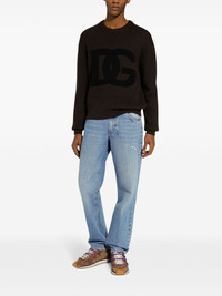 logo-embroidered jeans Highlights - Indigo blue - Cotton - Washed denim - Distressed effect - Embroidered logo to the rear - Logo patch to the side - Belt loops - Straight leg - Concealed fly and button fastening - Classic five pockets Made in Italy Composition Cotton 100%
