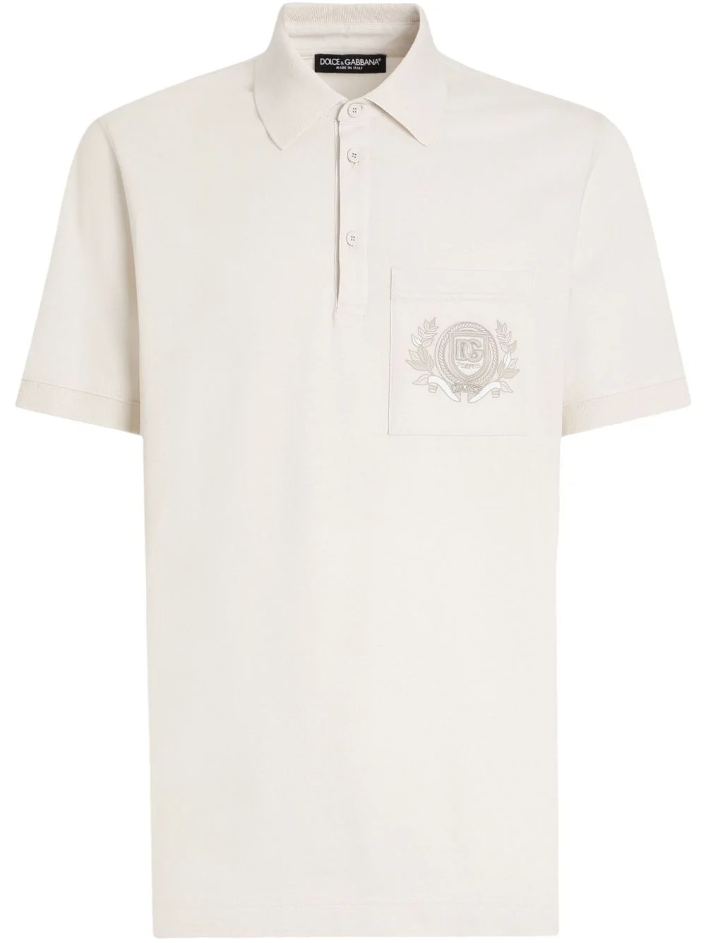 logo-embroidered polo shirt Highlights - Light beige - Front button placket - Chest patch pocket - Short side slits - Short sleeves Made in Italy Composition Cotton 100%