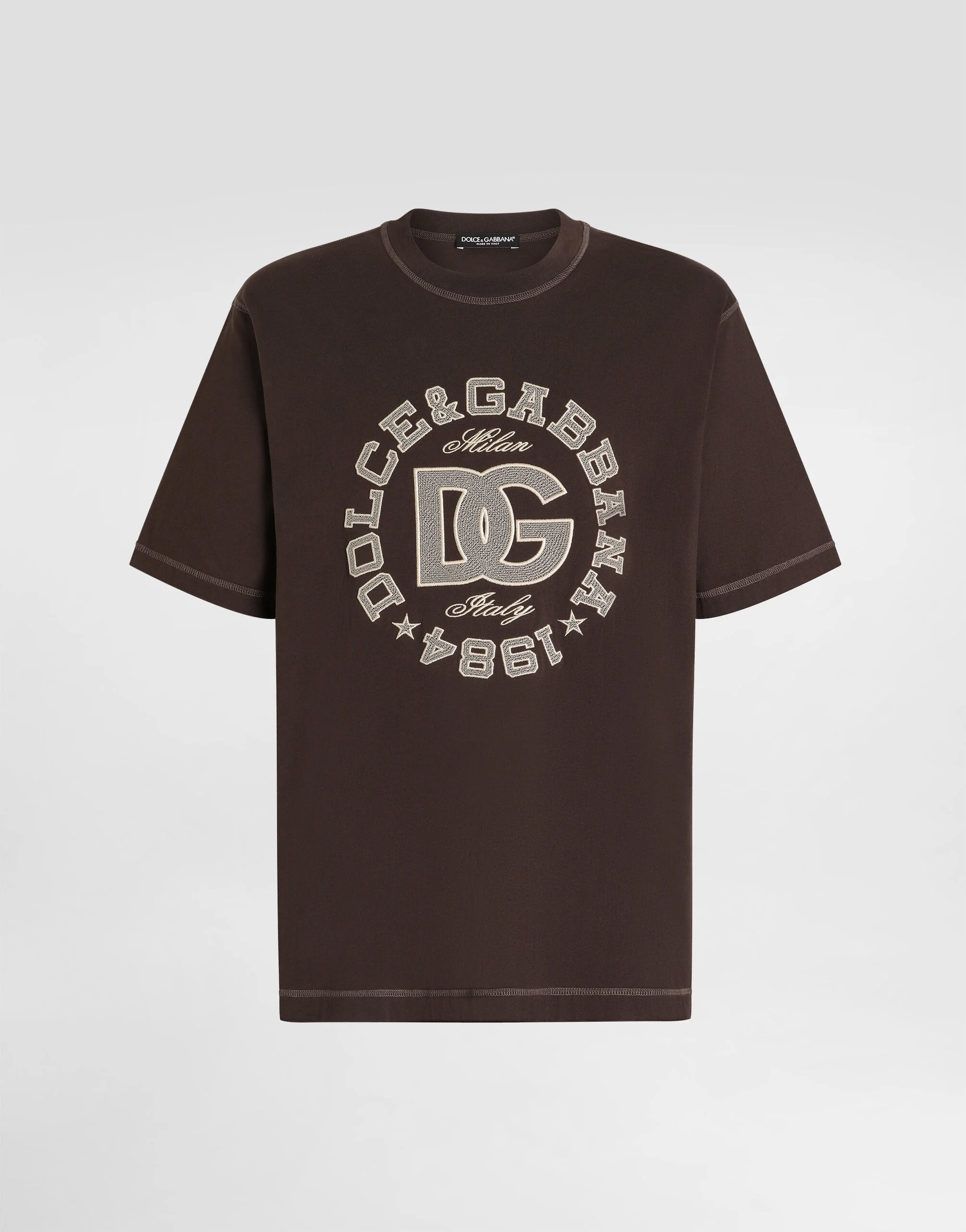 This short-sleeved crew-neck t-shirt is a men's wardrobe staple, featuring a classic design and embroidered details that add a touch of elegance to your everyday style. T-shirt with embroidery: • Brown • Regular fit • Crew neck • Short sleeves • The model is 185 cm tall and wears a size 48 IT • Made in Italy External Composition: 100% Cotton