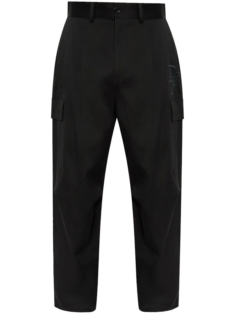 logo-embroidered cargo trousers Highlights - Black - Stretch-cotton - Front button and zip fastening - Belt loops - Two side inset pockets - Two side cargo pockets - Embroidered logo to the side - Two rear flap pockets - Straight leg Made in Italy Composition Cotton 98%, Spandex/Elastane 2%