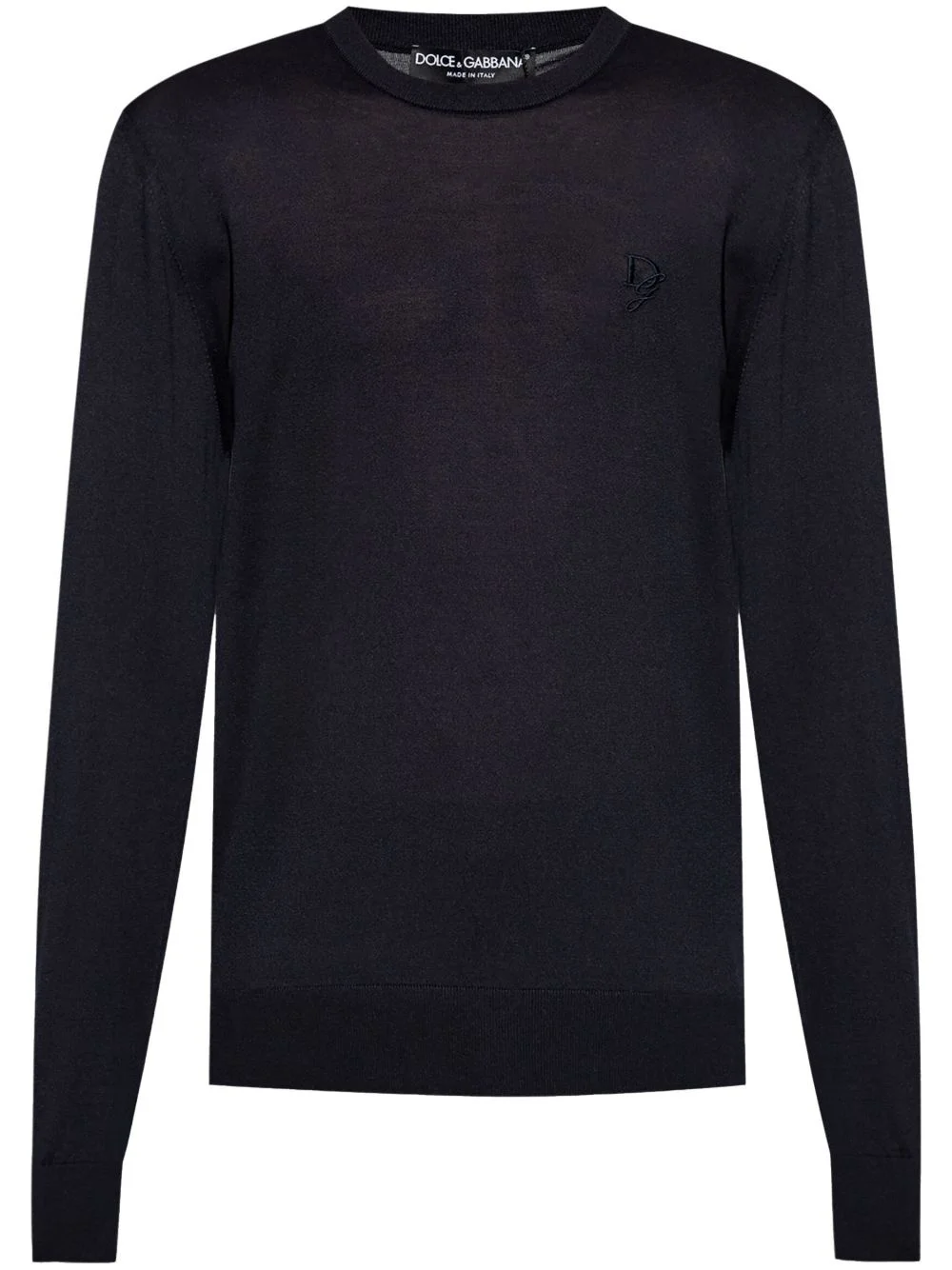 logo-embroidered sweater Highlights - Midnight blue - Ribbed cuffs and hem - Crew neck - Long sleeves Made in Italy Composition Silk 100%