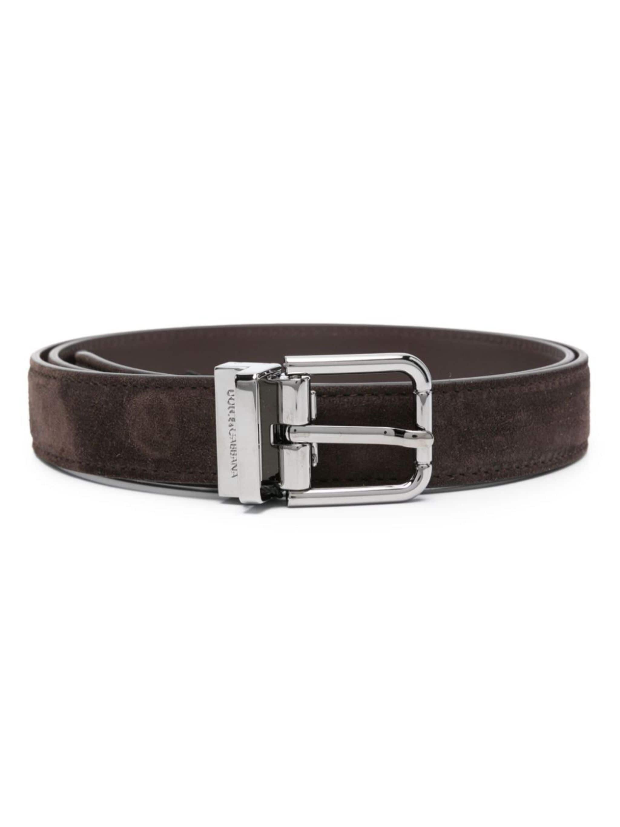 logo-engraved buckle suede belt