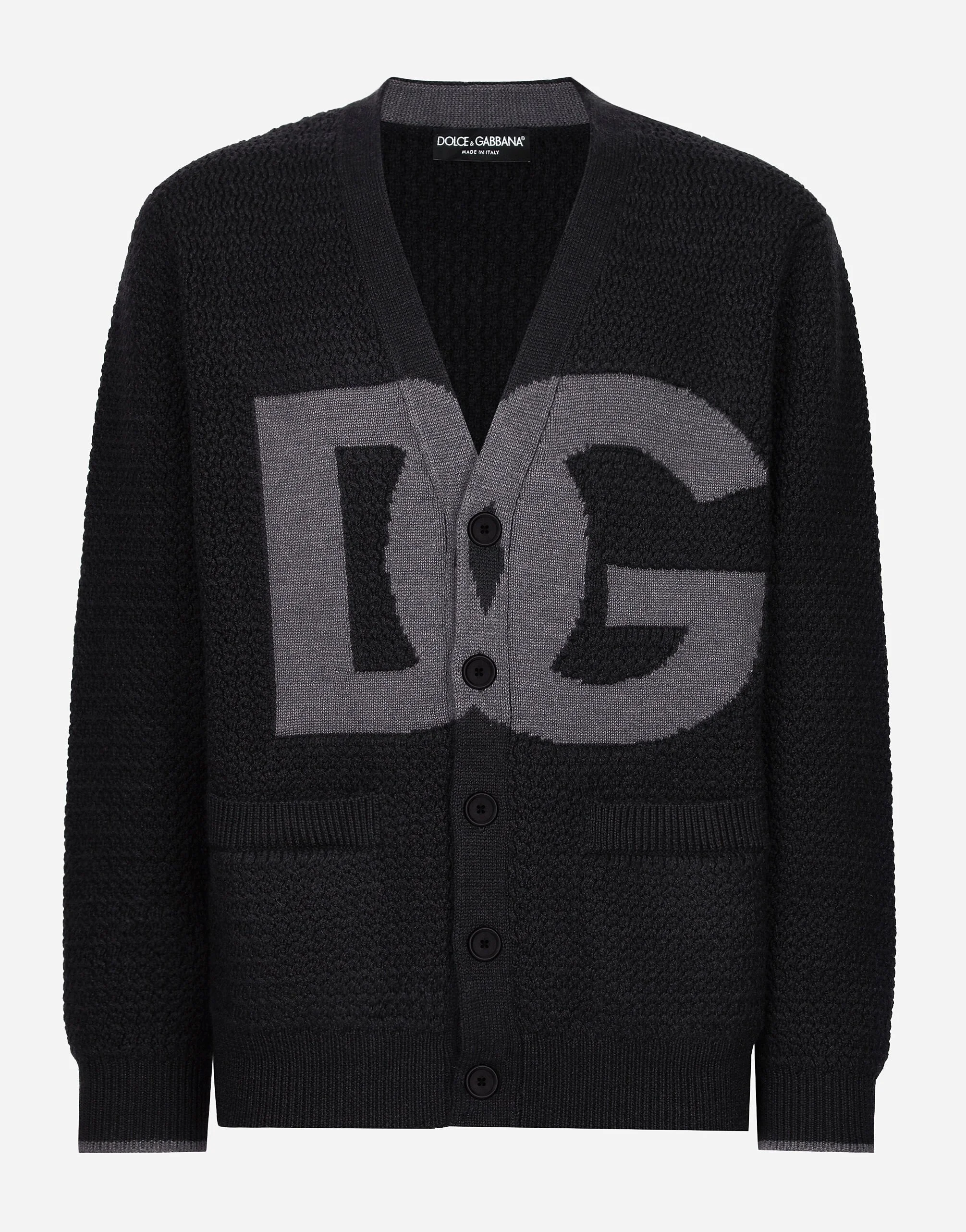 The men’s FW 24-25 Re-Edition collection conveys contemporary style that flaunts all the power of the creative DNA that consolidated the brand's image and elevated it to iconic status in the 2000s.Raw-cut details and skilled finishes distinguish pieces with streetwear character: military-inspired jackets and maxi-coats, multi-pocket cargo pants and picot pieces alternate with denim boasting many washes and dyes, thereby redefining an iconic style that is always evolving. Hand-knit wool cardigan with DG logo: • Brown • Oversize fit • V-neck • Long sleeves • Jacquard intarsia logo • 5-gauge knit • The piece measures 68 cm from the shoulder seam on a size IT 48 • Made in Italy External composition: 100% Virgin Wool