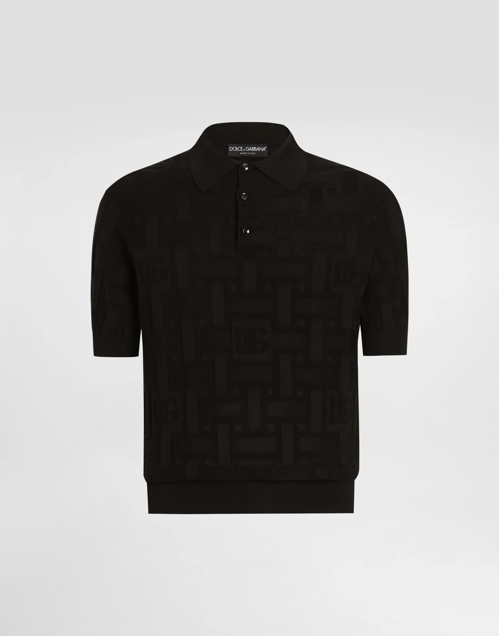 The DNA Men's Collection reimagines daily wear with bold contrasts, meticulous details, and innovative silhouettes. Outerwear stands out with clean lines and high-tech materials, merging sportiness with sophistication in sweaters, sweatshirts, and trousers. A striking color palette, including Black Sicily, caramel, cream, burgundy, and stone gray, pairs with iconic prints like Leopard and Polka dots, enhancing the collection's authentic and refined look. Silk polo-shirt with jacquard logo: • Black • Regular fit • Button fastenings • Short sleeves • Fine-rib neck, sleeve trims and hem • 18-gauge knit • The piece measures 68 cm from the shoulder seam on a size IT 48 • Made in Italy External composition: 100% Silk