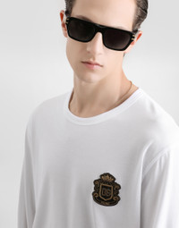 This long-sleeved t-shirt is perfect for a casual and refined look. With its heraldic patch, it adds a distinctive touch to your wardrobe. Cotton t-shirt with heraldic patch: • White • Crew neck • Long sleeves • The model is 185 cm tall and wears a size 48 IT • Made in Italy External Composition: 100% Cotton