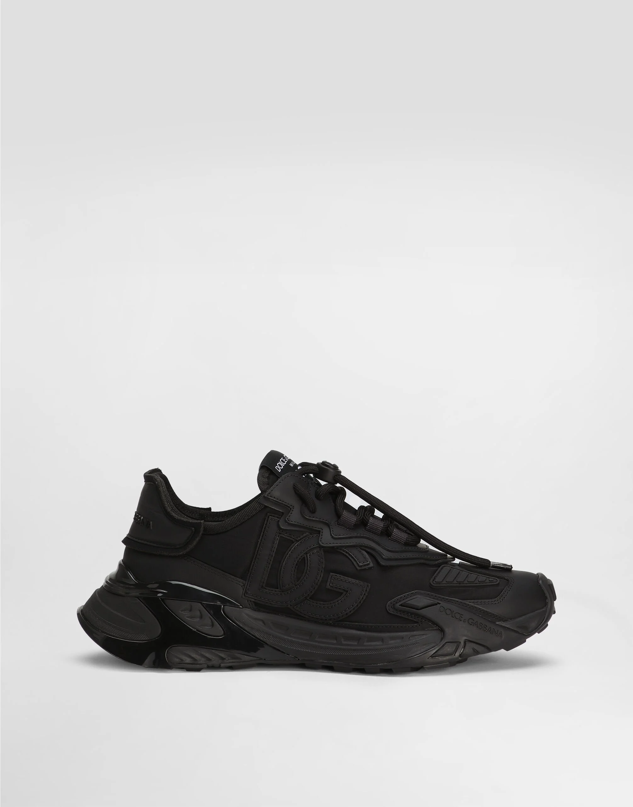 Viscose fabric sneakers: • Black • Day Faster shape • Phylon/Rubber/TPU outsole • Felt insole • Latex fussbett insole wrapped in leather, customized with label • DG Patch applied • Item equipped with a black cotton bag and a box made of recycled paper cellulose fiber • Sole height 30 mm • Made in Italy External Composition: 80% Viscose 12% Polyamide 8% Calfskin Internal Composition: 81% Lambskin, 19% Goatskin This product is made with leather from tanneries certified according to environmental standards.