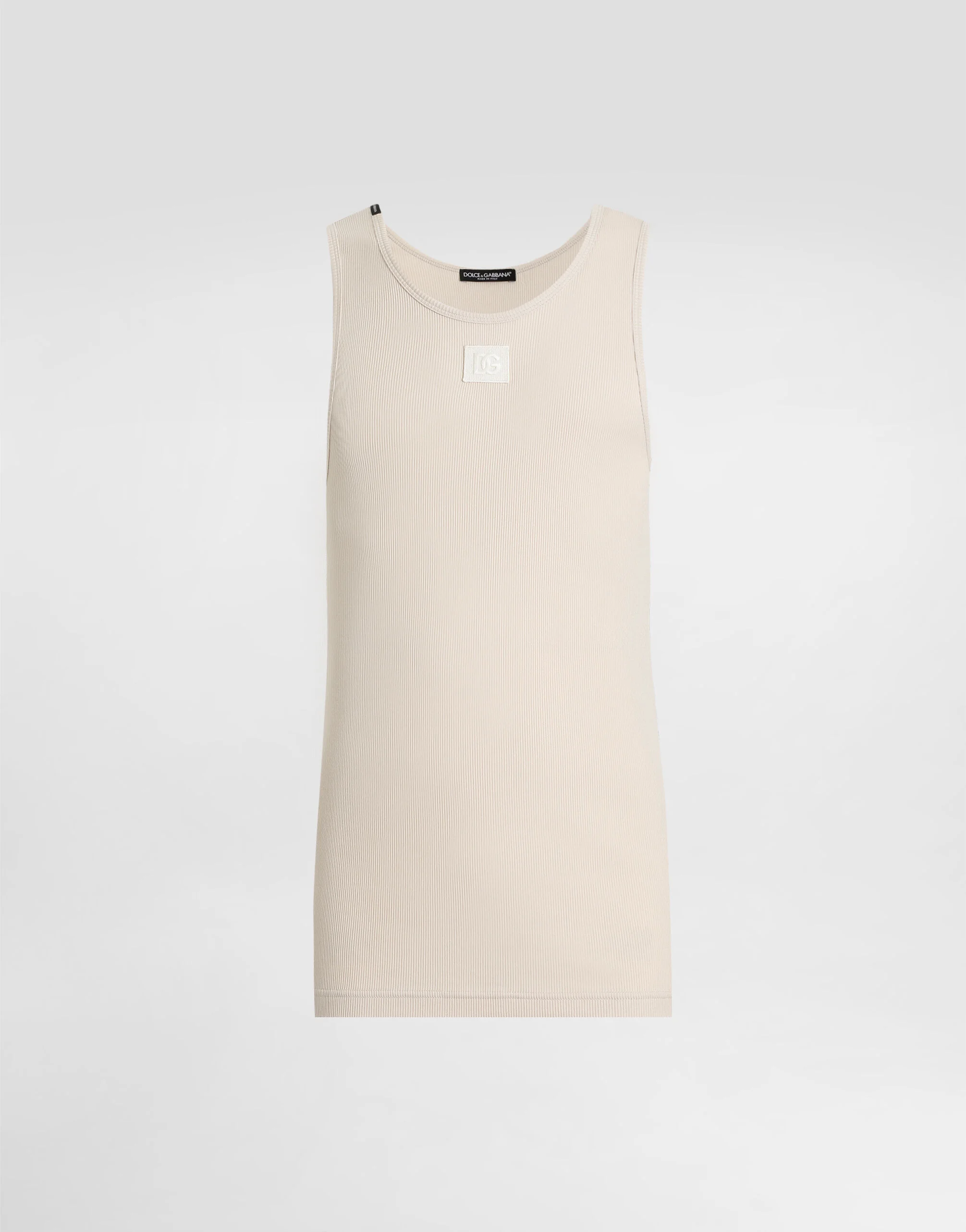 This tank top is a men's wardrobe essential, perfect for a casual and comfortable look during the hottest days. Ribbed tank top: • Beige • Slim fit • The model is 185 cm tall and wears a size 48 IT • Made in Italy External Composition: 100% Cotton