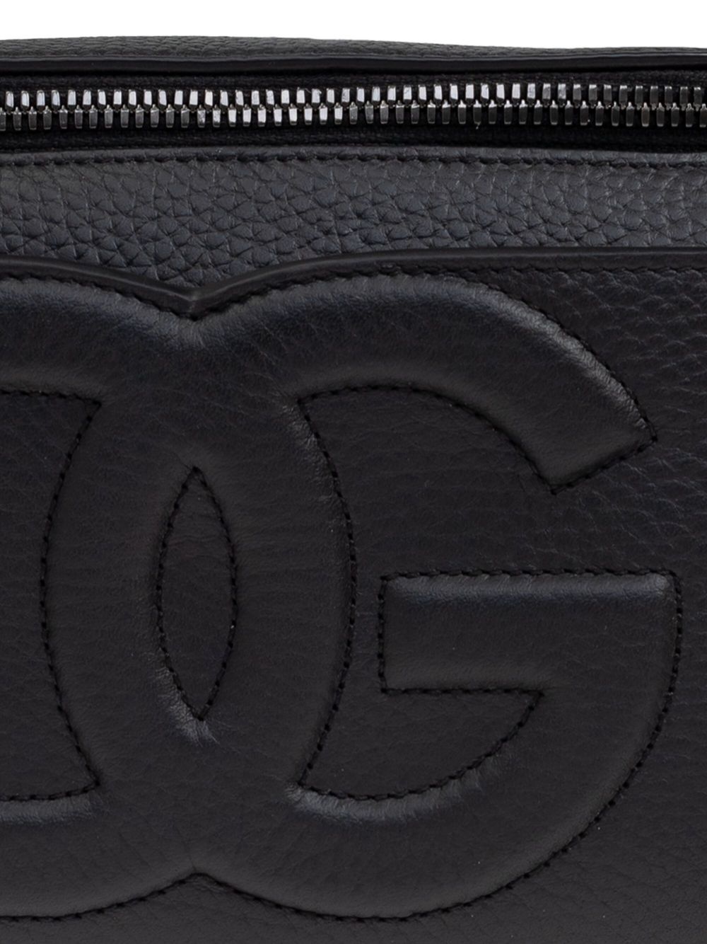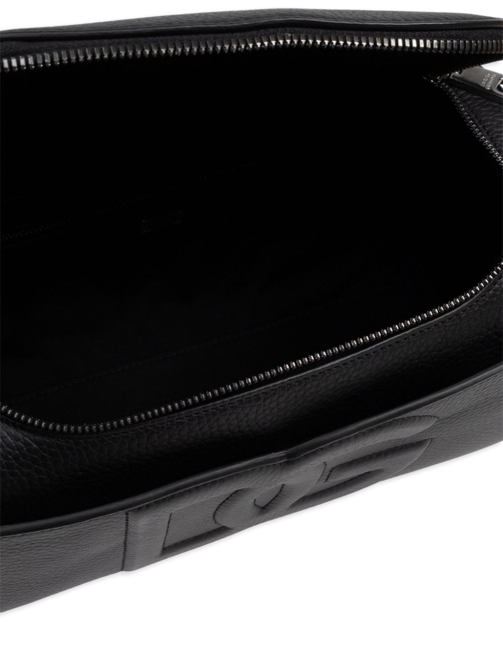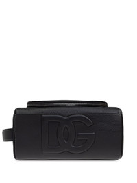 logo-patch wash bag Highlights - Black - Top zip fastening - Single flat side handle - Slip pocket to the front - Logo patch to the front Made in Italy Composition Outer: Calf Leather 100% SIZE & FIT Measurement HEIGHT 5.11 in(13 cm) WIDTH 10.03 in(25.5 cm)