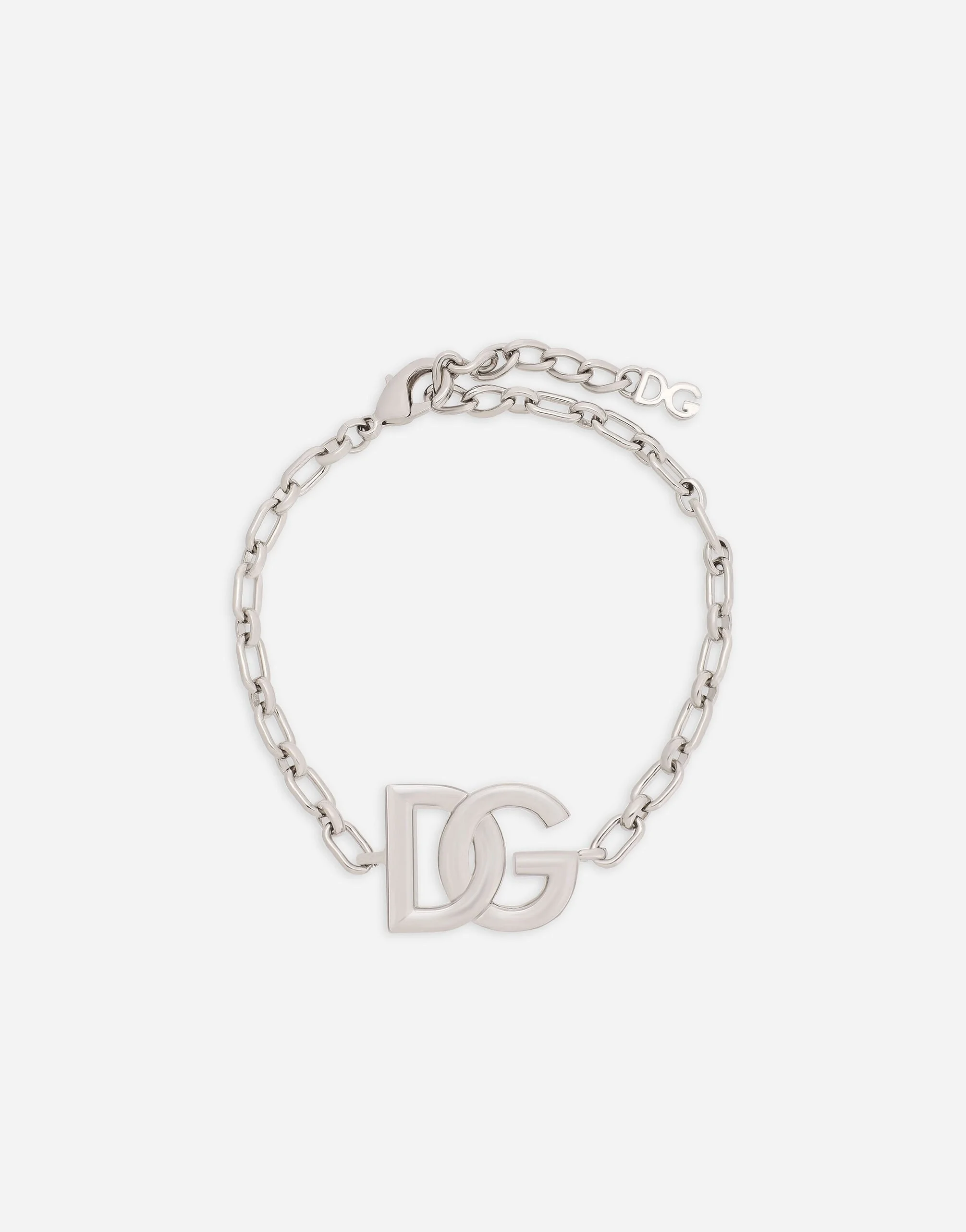 The SS24 “Stile” Collection recounts and clearly presents a strong concept: the unique and unmistakable style of Dolce&Gabbana. A word that is more than a statement. It is a concept! The designers work with surfaces, textures, layers and color nuances, as well as the sheen and fineness of the materials themselves, creating a “Stylish” collection. We’re going back to our roots with the desire to reaffirm the “Stile” - style -, flair and iconic DNA of the brand. Brass bracelet with Forzatina chain and DG logo: • Silver • Clasp fastening • Metal DG letters • Engraved logo • Nickel-free and hypoallergenic materials • Made in Italy External composition: 100% Brass