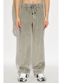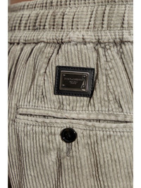logo-plaque corduroy trousers Highlights - Grey - Cotton - Corduroy - Elasticated drawstring waistband - Logo patch to the rear - Two rear button-fastening jetted pockets - Two side inset pockets - Straight leg Made in Italy Composition Cotton 100%