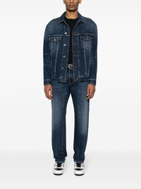 logo-plaque denim jacket Dolce & Gabbana infuses a classic denim jacket silhouette with a signature touch - note the polished silver-toned logo plaque that embellishes the back. Highlights - Indigo blue - Cotton - Denim - Applique logo to the front - Silver-tone debossed logo-plaque to the rear - Classic collar - Long sleeves - Buttoned-cuff sleeves - Two chest patch pockets - Two side slit pockets - Adjustable button waist tabs - Logo-embossed buttons - Front button fastening Made in Italy Composition Cotton 100% SIZE & FIT Model measurements Height 6 ft 2 in(1.87 m) Bust/Chest 36.22 in(92 cm) Hips 37 in(94 cm) Waist 27.95 in(71 cm) FittingInformation Designed for a regular fit, allowing for a comfortably loose fit throughout the body Sturdy and hard-wearing, this denim piece offers no stretch This piece fits true to size – take your usual size Washing instructions Machine Wash