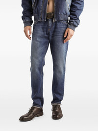 logo-plaque jeans Highlights - Indigo blue - Metal plaque - Five pockets - Belt loops - Button fastening Made in Italy Composition Cotton 100% Washing instructions Read Manufacturer Guidelines