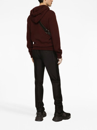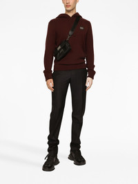 logo-plaque knitted hoodie Highlights - Burgundy - Silver-tone logo plaque - Drawstring hood - Long sleeves - Ribbed cuffs and hem - Front pouch pocket - Straight hem Made in Italy Composition Wool 40%, Rayon 30%, Nylon 20%, Cashmere 10% SIZE & FIT FittingInformation Designed for a relaxed fit, this piece allows for comfort and movement when worn Made from a midweight non-stretch fabric, this piece offers minimal elasticity when worn This piece fits true to size – take your usual size Measurement CHEST 44.09 in(112 cm) LENGTH 27.95 in(71 cm) SLEEVE LENGTH 27.55 in(70 cm)