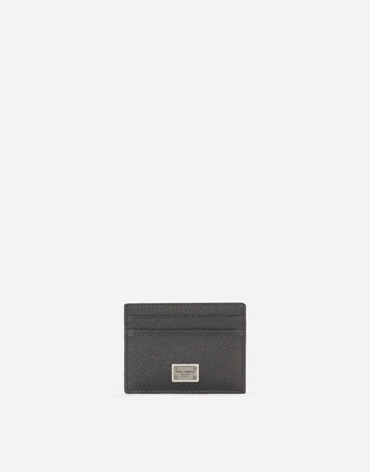 Dauphine calfskin card holder with logo tag: • Gray • Four front card slots and one on top • Item comes with a branded dust bag • Measurements: H7.5 x W10 x D0.5 cm • Made in Italy Care And Details External composition: 100% Calfskin Internal composition: 100% Viscose