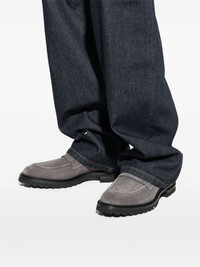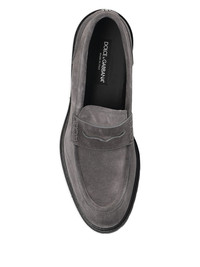 logo-plaque loafers Highlights - Dark grey - Slip-on style - Penny slot - Branded insole - Almond toe Made in Italy Composition Lining: Calf Leather 100% Sole: Rubber 100% Outer: Calf Suede 100%