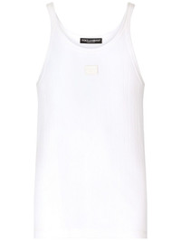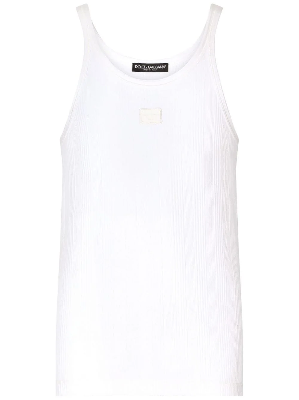logo-plaque ribbed tank top Highlights - Optical white - Stretch-cotton - Ribbed knit - Tonal stitching - Tonal logo plaque - Scoop neck - Thin shoulder straps - Sleeveless - Straight hem Made in Italy Composition Cotton 95%, Elastane 5% Washing instructions Read Manufacturer Guidelines