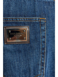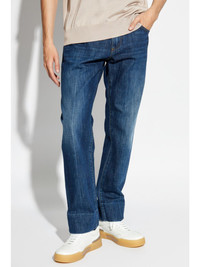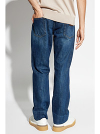 logo-plaque straight-leg jeans Highlights - Blue - Cotton - Denim - Mid-wash - Whiskering effect at the thighs - Concealed fly and button fastening - Classic five pockets - Belt loops - Logo patch to the rear - Silver-tone logo plaque - Straight leg Made in Italy Composition Cotton 100%
