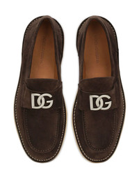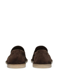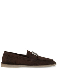 logo-plaque suede loafers Highlights - Brown - Calf leather - Suede - Logo plaque - Contrast stitching - Slip-on style - Almond toe - Branded insole - Flat rubber sole Made in Italy Composition Lining: Calf Leather 100% Outer: Calf Leather 100% Sole: Rubber 100%