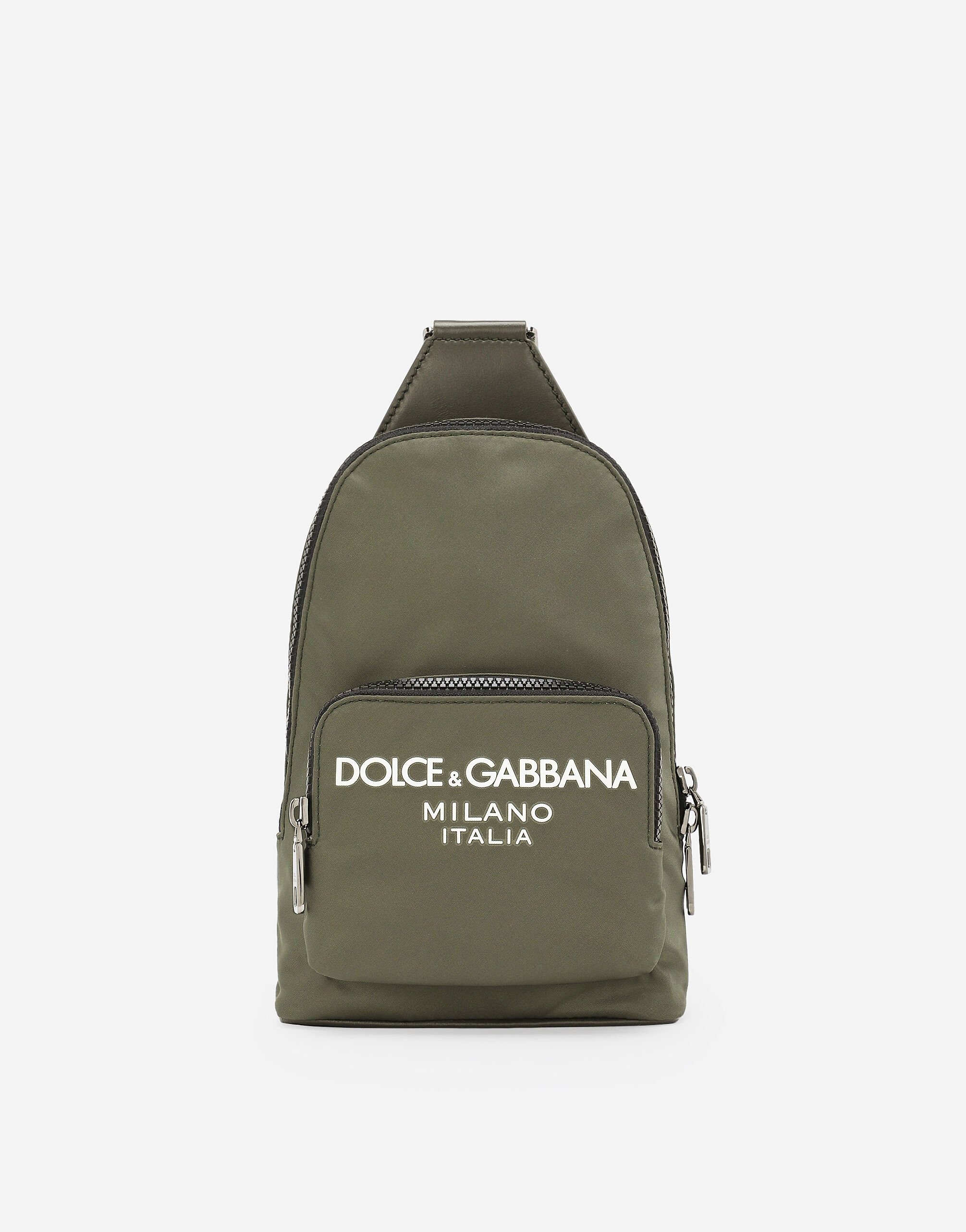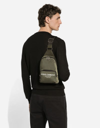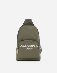 The brand’s iconic features adorn the logo. This Logo Lettering backpack is crafted from nylon and features the Dolce&Gabbana Milano logo. Nylon crossbody backpack with Dolce&Gabbana Milano logo: • Green • Top fastening with double zipper and slider with logo • Back pocket and front pocket with zipper and branded sliders • Adjustable tape strap with calfskin details • Nylon lining and zipped pocket • Item comes with a branded dust bag • Measurements: H25 x W16.5 x D8 cm • Made in Italy External composition: 50% Polyamide 20% Acrylic 15% Viscose 15% Calfskin Internal composition: 85% Polyamide 15% Calfskin