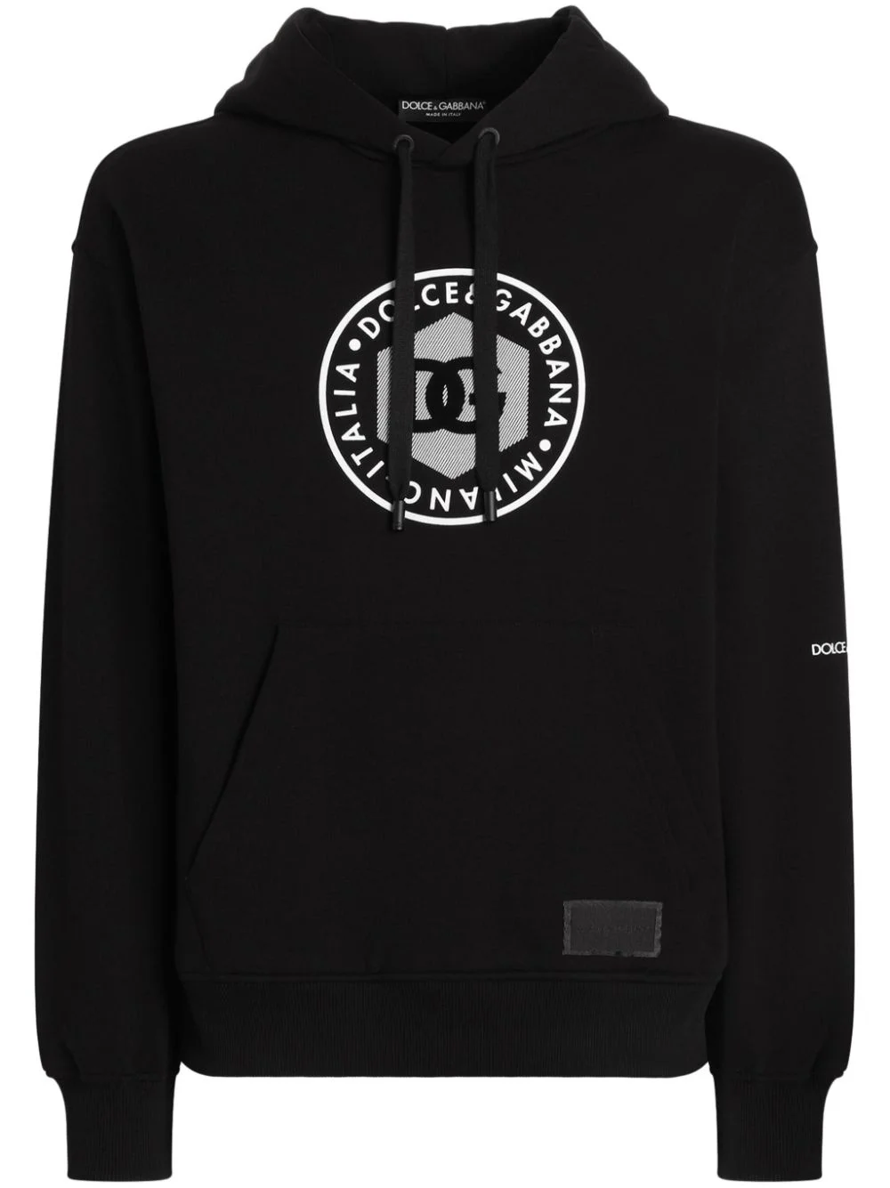logo-print hoodie Highlights - Black - Drawstring hood - Front pouch pocket - Ribbed cuffs and hem Made in Italy Composition Lining: Cotton 100% Outer: Cotton 100% Washing instructions Read Manufacturer Guidelines