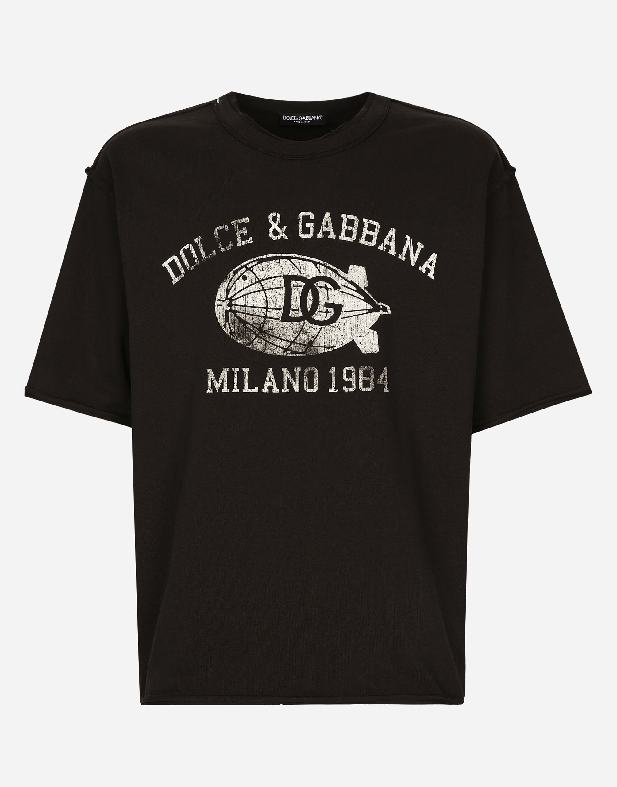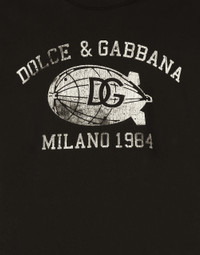 The men's FW 24-25 Re-Edition collection conveys contemporary style that flaunts all the power of the creative DNA that consolidated the brand's image and elevated it to iconic status in the 2000s. Raw-cut details and skilled finishes distinguish pieces with streetwear character: military-inspired jackets and maxi-coats, multi-pocket cargo pants and picot pieces alternate with denim boasting many washes and dyes, thereby redefining an iconic style that is always evolving. Cotton jersey T-shirt with Dolce&Gabbana logo print: • Black • Oversize fit • Stretch knit round neck • Short sleeves • The piece measures 74 cm from the rear collar seam on a size M • Made in Italy External composition: 100% Cotton