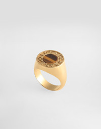 An elegant ring that expresses the sophistication and attention to detail of Italian design, perfect for adding a touch of class to your everyday look. Metal ring with stone and Dolce&Gabbana logo: • Gold • Diameter 1.8 cm • Made in Italy External Composition: 90% Brass, 10% Natural Stone