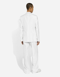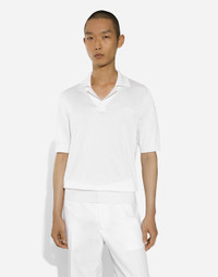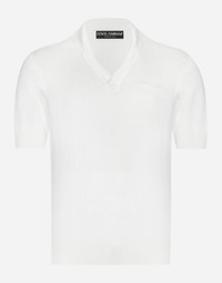 Pictorial, at times volumetric with a textured effect, the decorative “calligraphic-naturalistic" majolica in solid-color green gives life to a collection distinguished by eclectic silhouettes, some stolen from the world of sports, with a cool and light vibe. The vibrant two-tone accenting - green and white - is designed to enhance a series of details, such as the pockets, the green piping paired with the white silk pajamas, the stripes on the polo-shirts, the cuffs on the shirts or the jersey inserts on the T-shirts. Silk polo-shirt with Dolce&Gabbana signature: • White • Regular fit • Short sleeves • 18-gauge plain knit • The piece measures 64 cm from the shoulder seam on a size IT 48 • Made in Italy External composition: 100% Silk