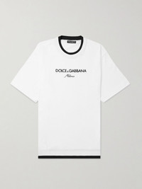 Dolce&Gabbana's tee is ornately embroidered with the brand's logo at the chest. It's been made in Italy from soft cotton-jersey in a timeless combination of black and white. Size & Fit - Intended to be oversized; we recommend sizing down if you prefer a closer fit - Mid-weight, slightly stretchy fabric - Model is shown wearing an IT 46 - Model measures: chest 38"/ 96cm, height 6'0"/ 183cm Details & Care - White and black cotton-jersey - 100% cotton - Machine wash