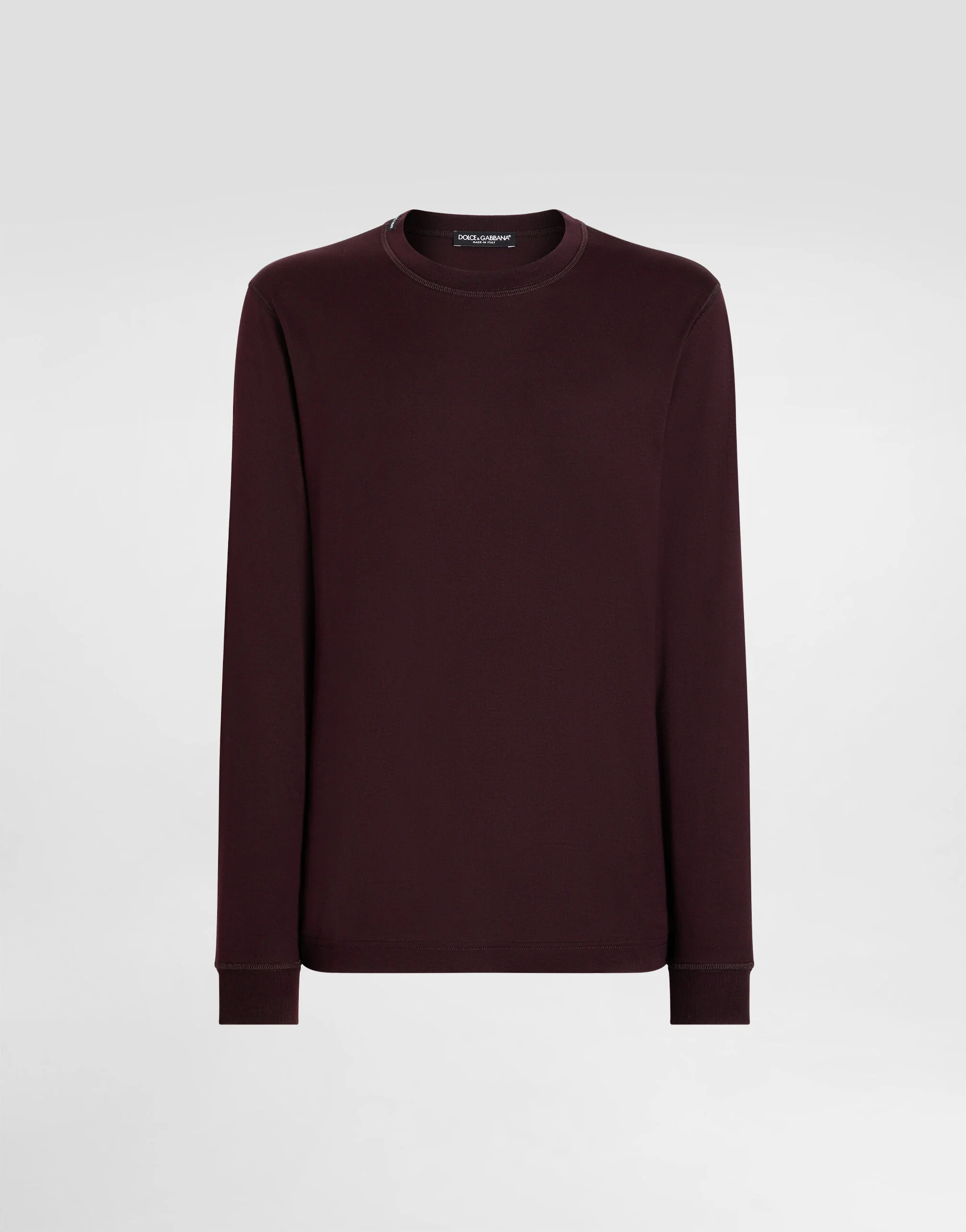 This long-sleeved t-shirt is a versatile and classic piece that is perfect for any occasion. Made from soft cotton jersey, it offers comfort and style in a single garment. Cotton t-shirt: • Violet • Classic fit • Crew neck • Long cuffed sleeve • The model is 185 cm tall and wears a size 48 IT • Made in Italy External Composition: 100% Cotton