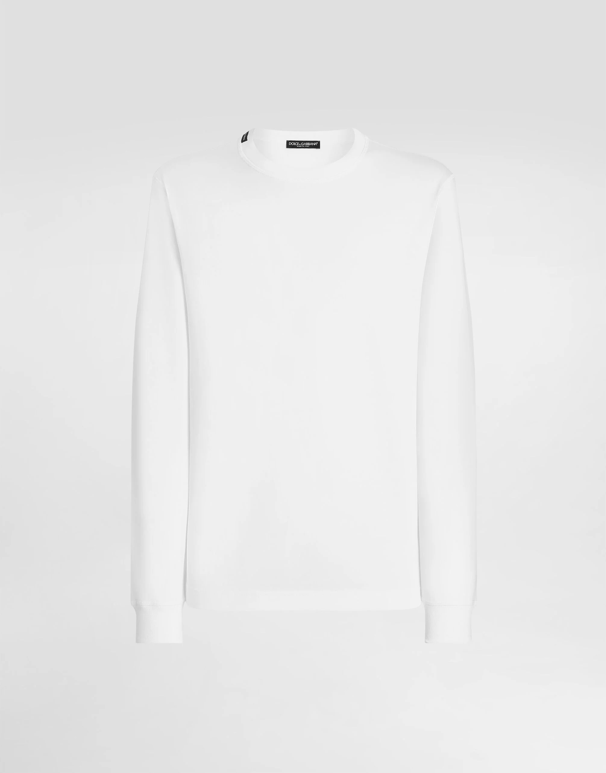 This long-sleeved t-shirt is a versatile and classic piece that is ideal for any men's wardrobe. Perfect for wearing alone or under a jacket, it easily adapts to various styles and occasions thanks to its simple and clean design. Long-sleeved cotton T-shirt: • White • Crewneck • The model is 185 cm tall and wears a size 48 IT • Made in Italy External Composition: 100% Cotton