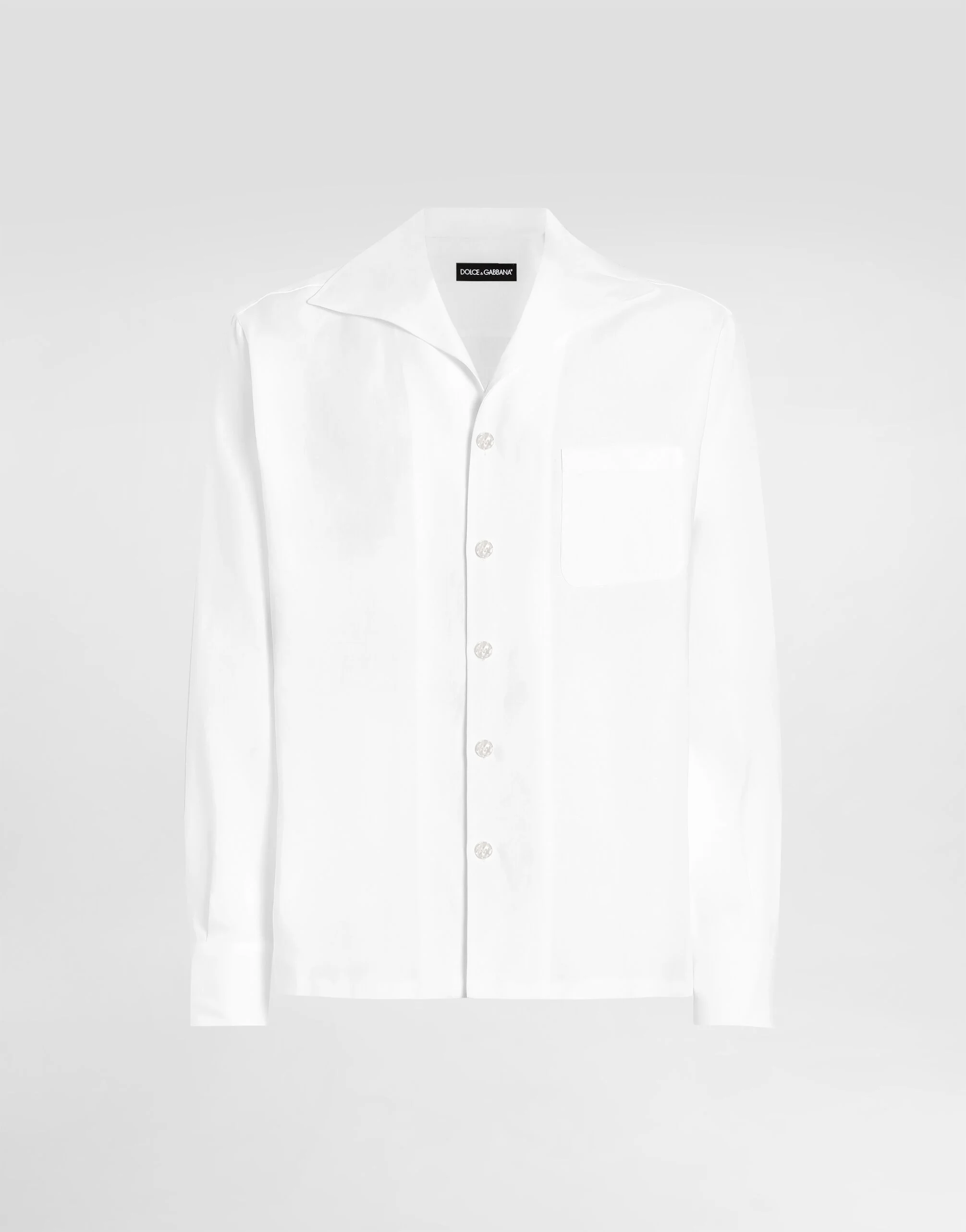 Italy and its beauty are reflected in the Men’s SS25 Collection. Woven raffia and leather give life to jackets, polo-shirts and sweaters to celebrating Italian craftsmanship. The color palette ranges from Nero Sicilia black to burgundy, contributing to conveying a sense of eternal elegance. Refined accessories complement the look: belts and loafers with hand-finished details and oversize bags, such as the Sicily, the Marlene with crocodile-effect print and the versatile Adamo tote. Long-sleeved linen shirt: • White • Oversize fit • Long sleeves • Button fastenings • The piece measures 74 cm from the rear collar seam on a size IT 40 • Made in Italy External composition: 100% Linen