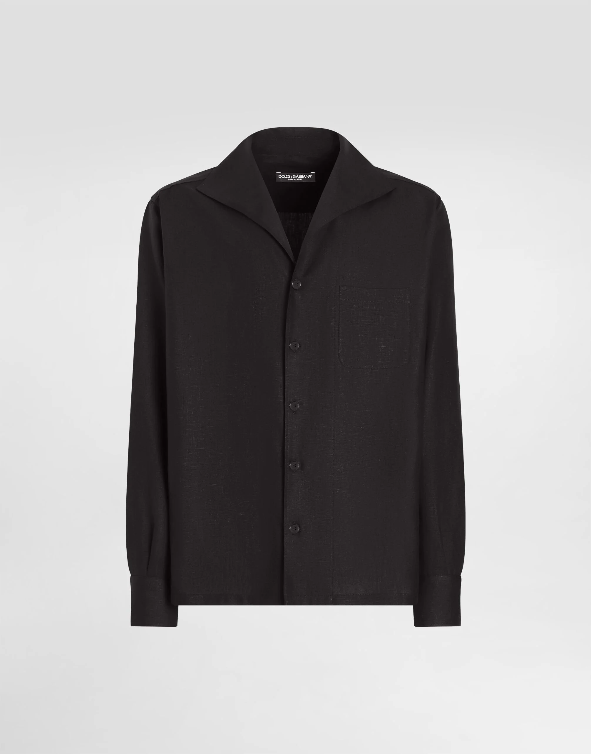 Italy and its beauty are reflected in the Men’s SS25 Collection. Woven raffia and leather give life to jackets, polo-shirts and sweaters to celebrating Italian craftsmanship. The color palette ranges from Nero Sicilia black to burgundy, contributing to conveying a sense of eternal elegance. Refined accessories complement the look: belts and loafers with hand-finished details and oversize bags, such as the Sicily, the Marlene with crocodile-effect print and the versatile Adamo tote. Long-sleeved linen shirt: • Black • Oversize fit • Long sleeves • Button fastenings • The piece measures 74 cm from the rear collar seam on a size IT 40 • Made in Italy External composition: 100% Linen